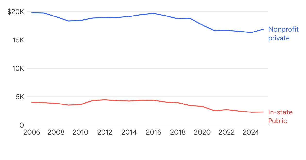 College tuition has become more affordable in recent years. The economic return on a bachelor’s degree has stopped growing but remains near historic highs. After a post-pandemic dip, four-year college enrollment has almost fully recovered to near-record levels. Students are increasingly flocking to flagship public universities like UCLA and the University of Michigan.