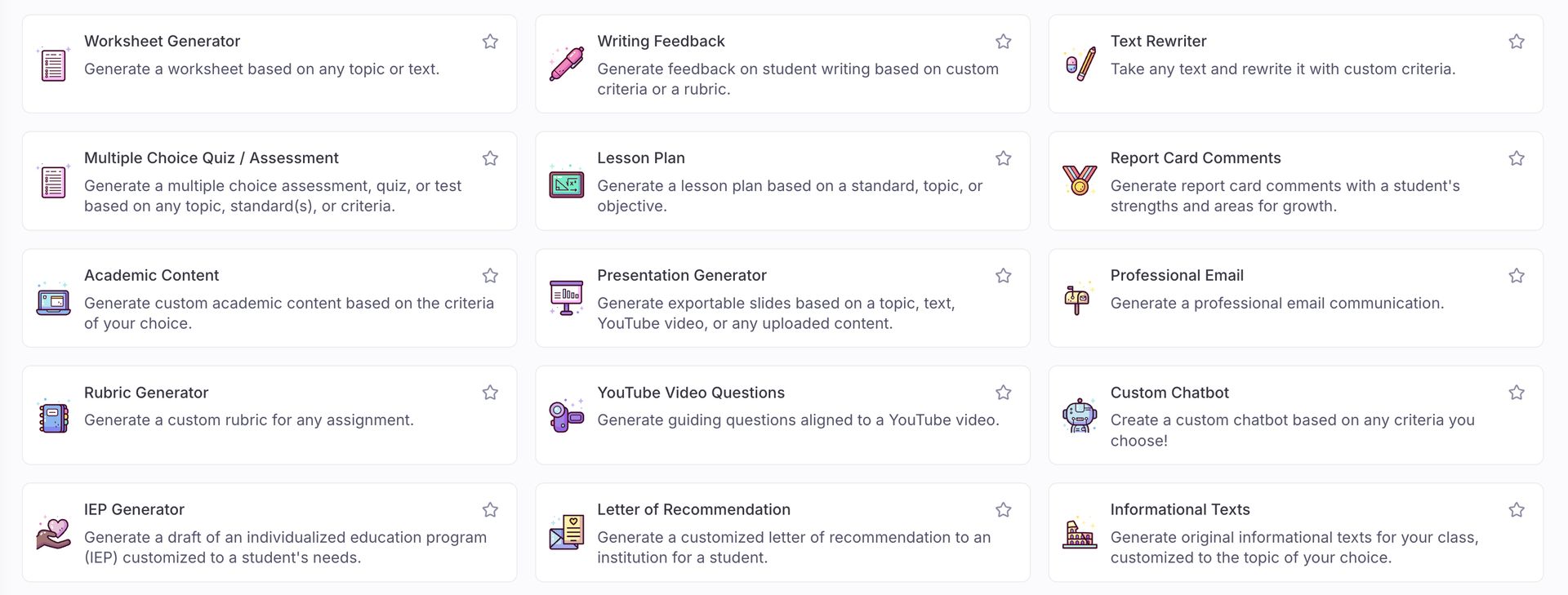 Yeah, I do worry about it. I think that the teacher's expertise is really, really important. Every one of the tools, including the lesson plan generator, prompts the teacher before they get an output to do the thinking first. What standards are you going to use? What context about your students can you give? In our professional developments, we remind teachers they are still in charge.